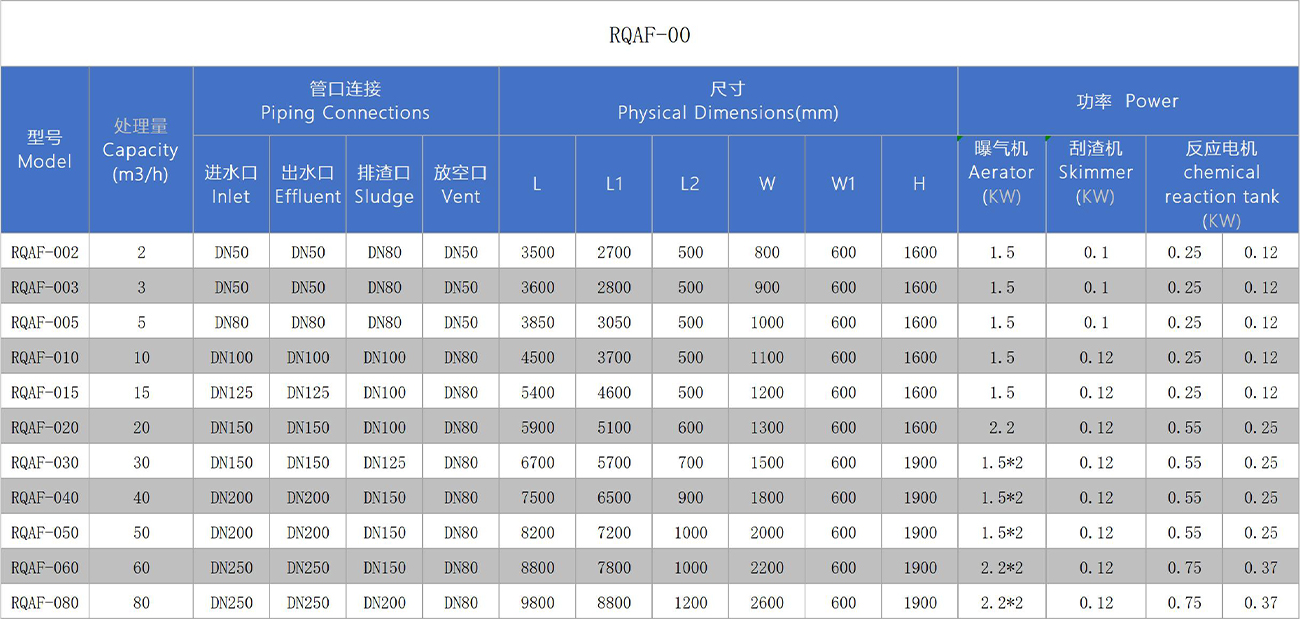 Nietraktowane ścieki po raz pierwszy wchodzi do strefy napowietrzania i są w pełni zmieszane z mikropęcherzykami. Mikrobubble przynoszą zawieszone ciałę stałe na powierzchnię wody podczas wzrostu. Skrobak biegnie wzdłuż powierzchni ciekłej, aby zeskrobać zawieszone substancje stałe na nachylonej metalowej płytce, a następnie wciska je do koryta rury wyładowczej szlamu, przez którą przepływają do kolektora osadu. Po oczyszczeniu ścieków przejdzie przez przepełnienie pod nachyloną płytą przed wyładowaniem. Koryto przelewowe służy do kontrolowania poziomu wody zbiornika flotacyjnego, aby upewnić się, że ciecz w zbiorniku nie przepływa do rury wyładowania osadu. Otwarta rura przepływu gardła rozciąga się od sekcji napowietrzania wzdłuż dna zbiornika flotacyjnego. Podczas generowania mikropęcherzyków Aerator Vortex utworzy strefę ciśnienia u podnośników u dołu basenu z rurą powrotną. To podciśnienie spowoduje spływ ścieków z dna basenu do strefy napowietrzania, a następnie powróci do sekcji flotacji. Proces ten zapewnia, że flotacja trwa bez napływu.