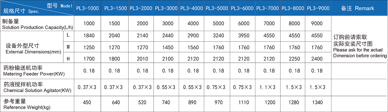 Automatyczny trójbasowy system przygotowania proszku PL3 jest podzielony na zbiornik rozpuszczający się, zbiornik utwardzający i zbiornik magazynowy. Można go kontrolować ręcznie lub automatycznie. System ma kompaktową strukturę, może być obsługiwany automatycznie, a stężenie przygotowania jest regulowane.